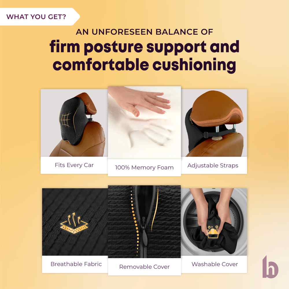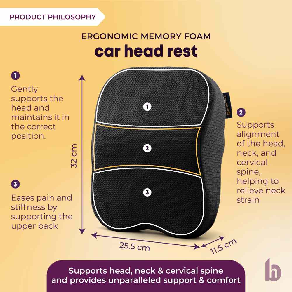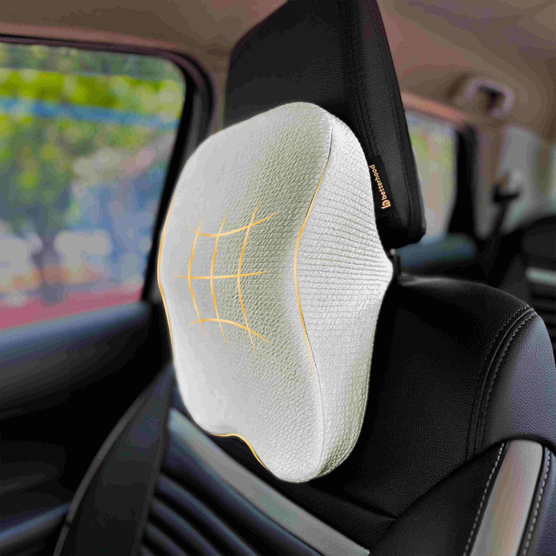 Neck strain often builds up during long drives or poor sitting posture. The ergonomic curve of the neck rest supports the cervical spine, helps maintain alignment, and reduces fatigue. It cradles the neck with memory foam comfort while promoting healthy posture.