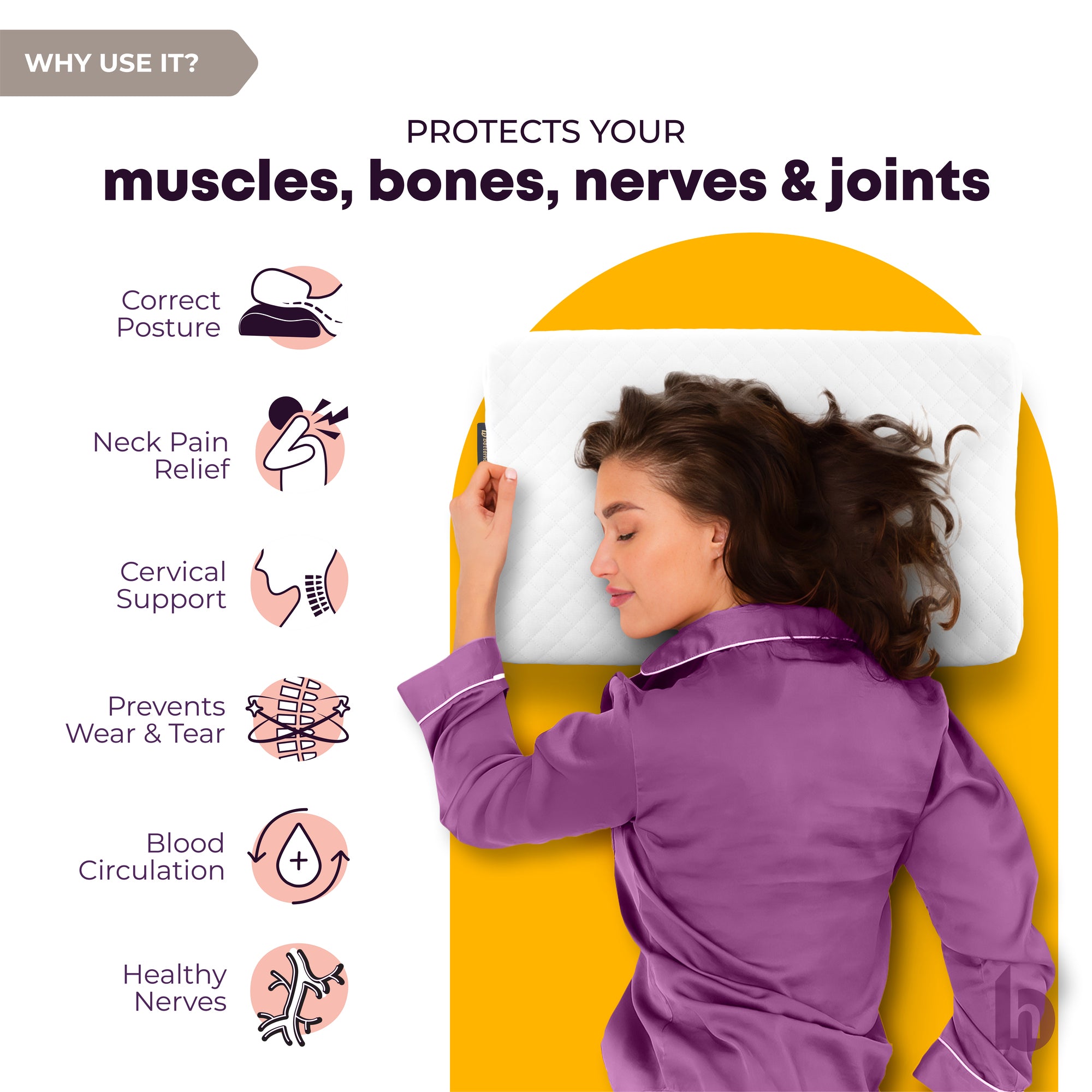 The price reflects the high-quality materials used, including 100% pure memory foam. Unlike cheaper alternatives, our pillow is free from harmful chemicals and offers perfect, firm yet comfortable support, which enhances sleep quality and helps alleviate neck pain.