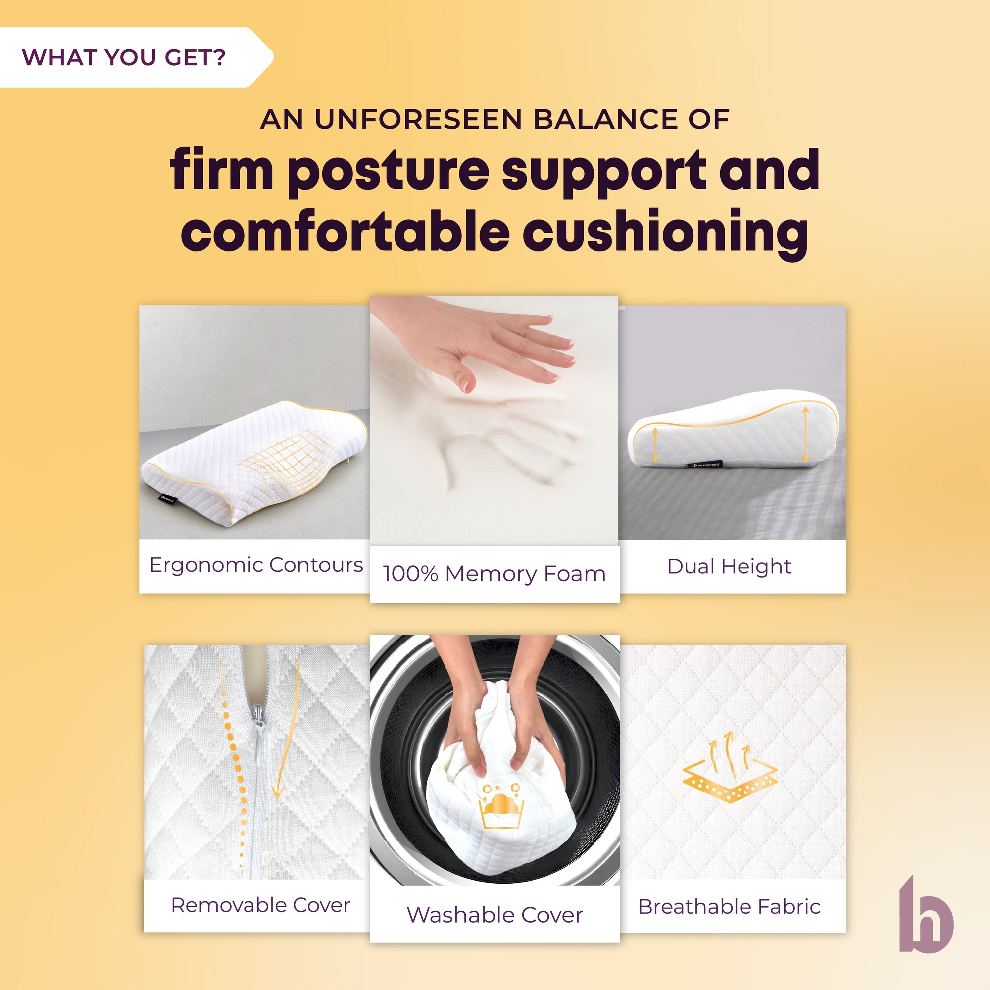 The betterhood™️dual-height Cervical Pillow is designed to provide optimal support for the neck and head, with two height options to ensure perfect spinal alignment. Made from 100% pure high-quality memory foam, it helps alleviate neck pain, reduce stiffness, and promotes restful sleep, aiding in recovery.