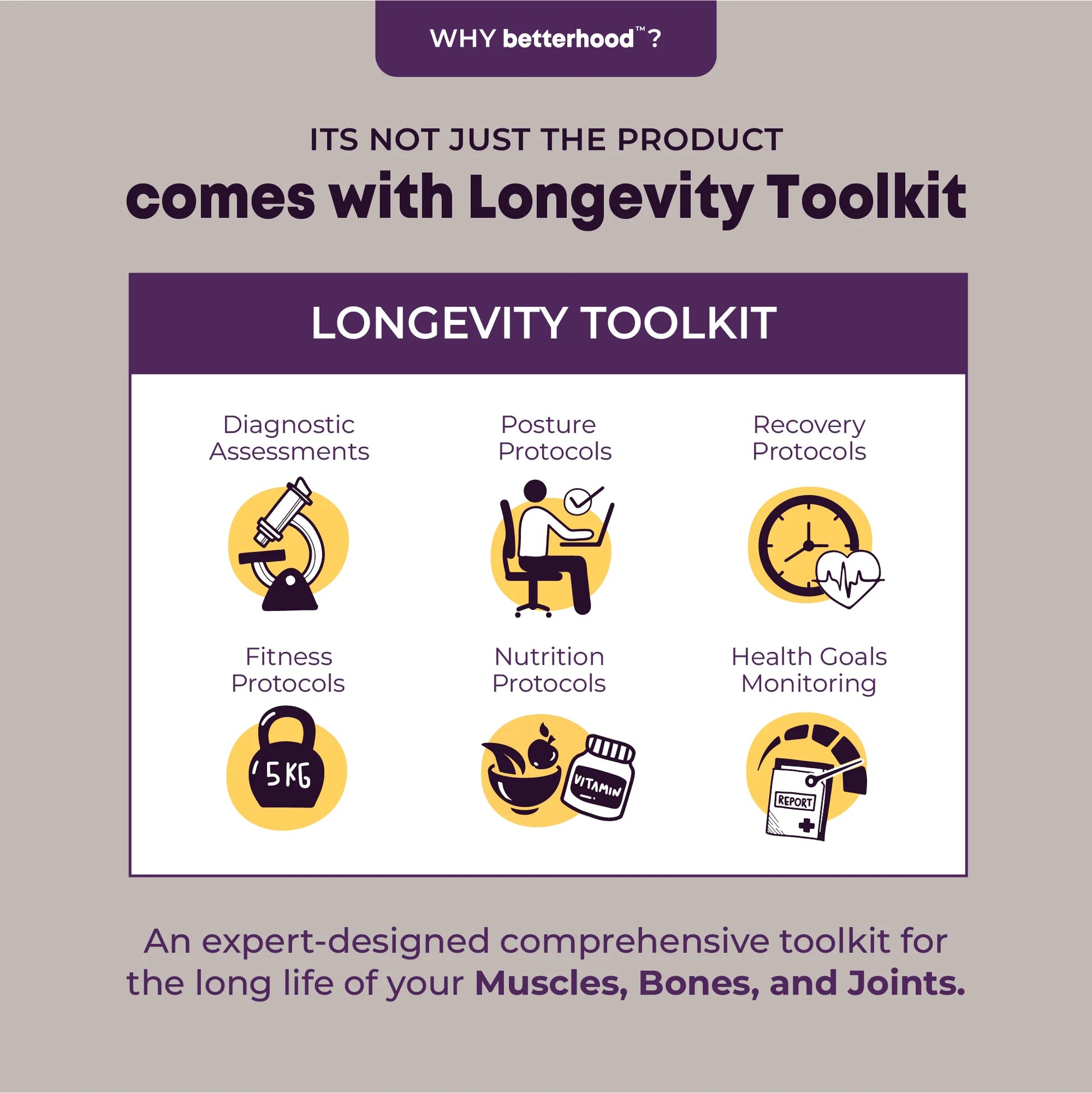 Comes with musculoskeletal longevity toolkit icon icon